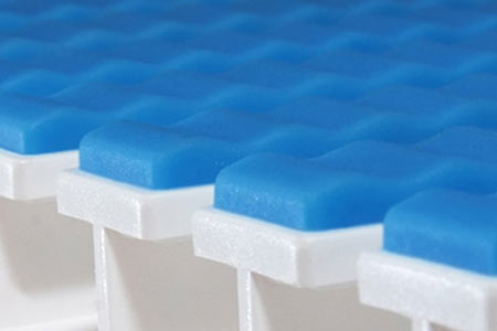 Bi-materijalni model bazenskih rešetki za preljevne kanale proizveden metodom dvostrukog injekcijskog brizganja plastike za optimalno iskorištavanje prednosti dva materijala različitih svojstava. Dodatna srednja klik-spojnica za jednostavnu montažu osigurava stabilnost segmenata bez potrebe dodatnog učvršćivanja šipkama. Proizvedeno od PP-UV-a visoke otpornosti na udarce i abrazije i visoko protukliznog TPE-UV-a. UV stabilni materijali sa svjetlostalno stabiliziranim bojama. Dostupno u fiksnim i fleksibilnim segmentima (1m). Dostupni 90° kutni elementi, kao i specijalni kutni elementi po narudžbi (na upit).